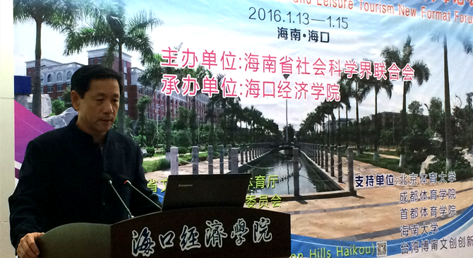 1月14日-15日,首届“体育+”与休闲旅游运动新业态高峰论坛在海口经济学院举行。本次高峰论坛由海南省社会科学界联合会主办,海口经济学院承办,海南省旅游发展委员会、教育厅、文体厅、民族宗教事务委员会以及北京体育大学、成都yl6776永利集团、首都yl6776永利集团、海南大学、海口观澜湖旅游度假区、海南昆仑体育文化股份有限公司、台湾屏东科技大学等作为支持或协办单位。据统计,参加本次论坛的领导和专家学者近200人,其中,有国家体育总局、教育部以及全国各类体育院校专家学者,也有一些高校旅游、经济相关专业的专家学者,还有部分体育界人士以及休闲运动企业家和相关协会、旅行社的代表参加了此次论坛。