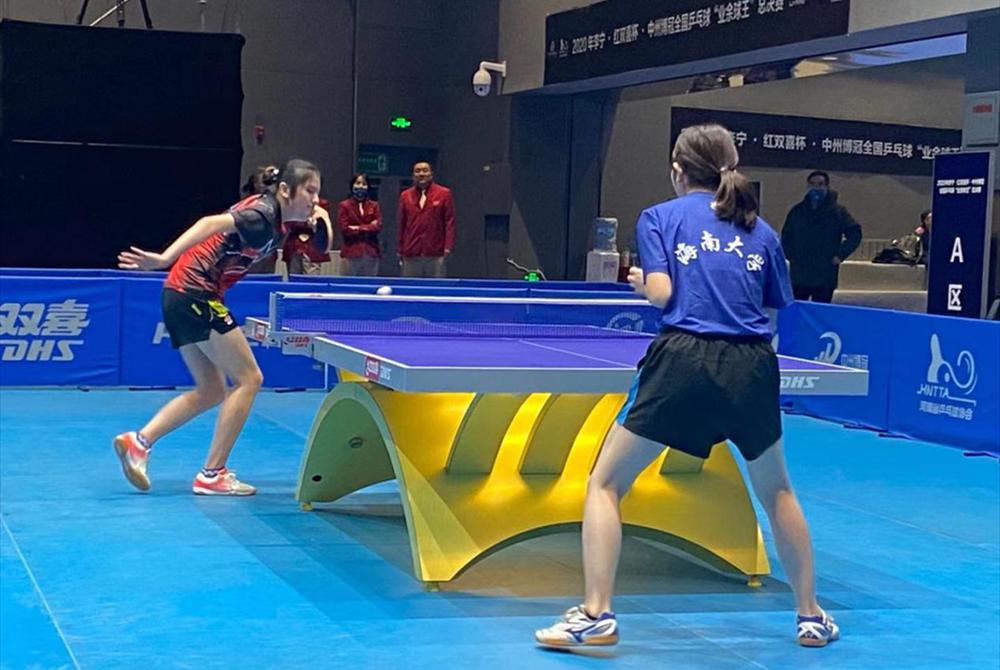 本次乒乓球邀请赛分单项赛和团体赛,共邀请来自各省26支代表队。海南省乒乓球协会海南大学代表队在这次比赛中表现尤为亮眼,在主教练李璠珺的带领下,男团队员漆锦东、纪金廷、赵傲与女团队员焦佳敏、吴昱云、陈枫文一行人来到河南郑州,整支队伍训练有素、水平高超,以最饱满的精神水平展现了一场场高水平高观赏性的比赛。比赛中大家激情四射,你来我往,赛出了水平、赛出了团结、赛出了和谐,经过4天激烈的角逐,海南大学代表队男团女团均进入全国八强,纪金廷取得了进入全国男单16强的好成绩。