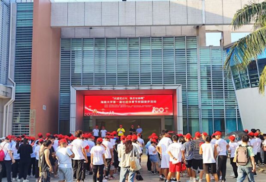 开幕式上,海南大学轮滑协会和武术协会专门为本次活动现上精彩的轮滑花样表演和武术对练表演。接着,校园徒步活动在一声发号枪响下开始了。徒步活动以思源学堂(北门)为起点,沿主干道绕整个海甸校区一周,全程约3.5公里,路途上设有1921共产党成立、1935遵义会议、1949新中国成立、1953抗美援朝胜利、1964两弹一星建功勋、1978改革开放等个打卡点和10个百年党史大事件宣传栏,同时志愿者为师生讲解各点的党史大事件,将党史学习教育与体育健身活动融合到一起。
