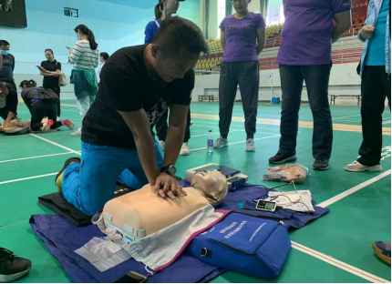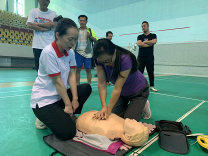本次的应急救护培训分为两个部分,分别是心肺复苏知识讲解和操作实践。朱萍副院长向教职工讲解心脏骤停的原理和危害,四至六分钟是心脏骤停抢救的关键时期,如不得到即时的抢救复苏,就可能出现“脑死亡”现象,并导致神经系统难以恢复,危及生命。因此,掌握这项最基本的急救技术至关重要,当身边有紧急情况发生时,也能沉着应对。