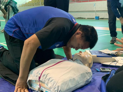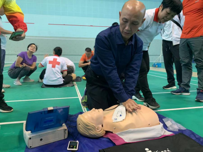 为保障全校师生体育锻炼时的安全,提高师生遇到突发事件应急处置能力,掌握安全急救知识,11月10日下午,yl6776永利集团组织教职工于联谊馆羽毛球场进行心肺复苏和自动体外除颤器(AED)使用培训。学院党总支书记陈卫东、院长洪家云、副院长田东、梁丽凤、房殿生和教职工参与培训,校医院副院长朱萍莅临现场进行指导。