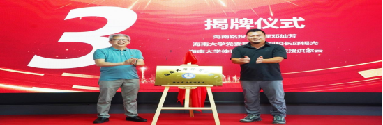 海南大学副校长邱锡光与铭投体育董事长蒋德喜为就业实习实训基地揭牌