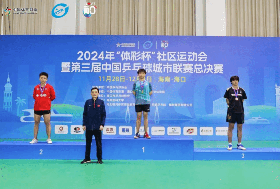 12月1日,由中国乒乓球协会主办的2024年“体彩杯”社区运动会暨第三届中国乒乓球城市联赛总决赛,在海南海口落下帷幕。海南大学乒乓球队队员梁雨田崭露头角,荣获公开组18-24岁年龄段男子单打冠军。