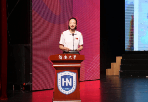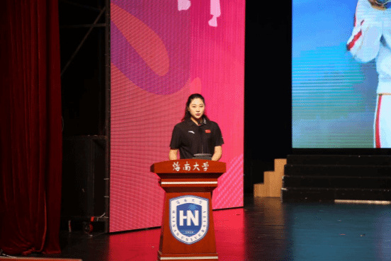 篮球国家级健将、全国冠军、海南大学教师蒋通,讲到自己在心理困境与身体伤痛的双重磨砺中步步突围,最终捧起全国总冠军奖杯。她告诉学生:“通过体育,学会和自身对话、和他人联结,慢慢成为更有活力、更懂坚持的海大人。”