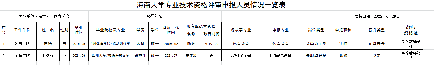 根据《海南大学人事处关于做好2022年专业技术职称(务)评聘工作的通知》精神,yl6776永利集团共有6名教职工提交申报《专业技术岗位聘用人选申报表》,有2名教教师提交《专业技术评审(认定)申报表》现进行公示如下: