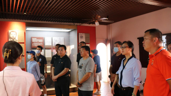 本次活动首站参观地点为中共琼崖第一次代表大会会址,在参观中开展党史学习教育现场教学活动。活动中,党总支书记陈卫东带领大家重温入党誓词,全体党员高举右拳,用坚定有力的誓言抒发对党的忠诚。在讲解员的带领下,全体党员通过参观旧址中的会议室、革命先烈室和党史展览室,深刻感受到了革命先烈们艰苦卓越的光辉历程和前仆后继、百折不挠的革命斗争精神。